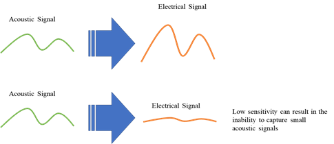 that the microphone is sensitive enough to efficiently convert acoustic pressure to an electrical signal with enough